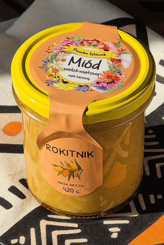 Miód z liofilizowanym rokitnikiem.
